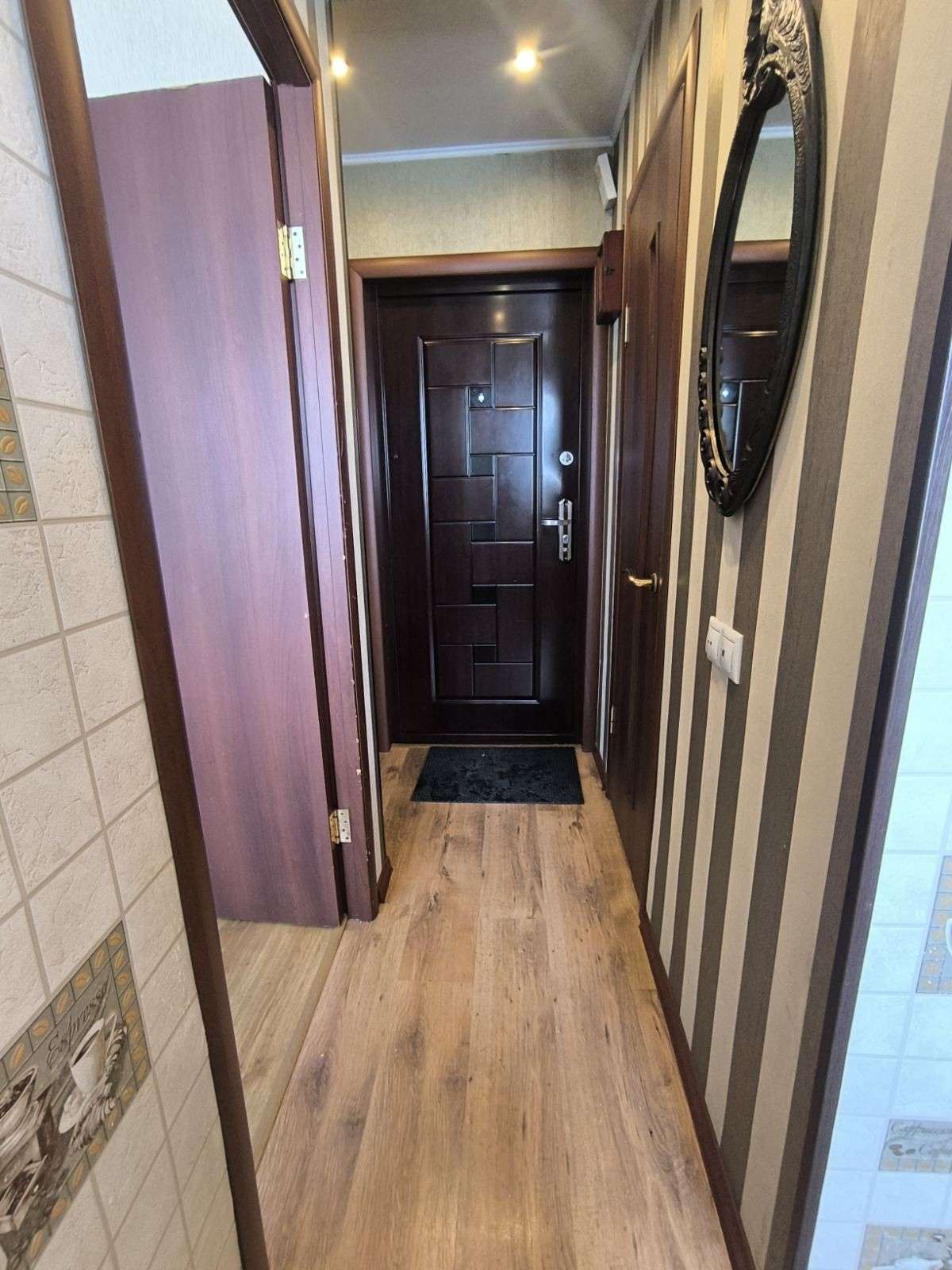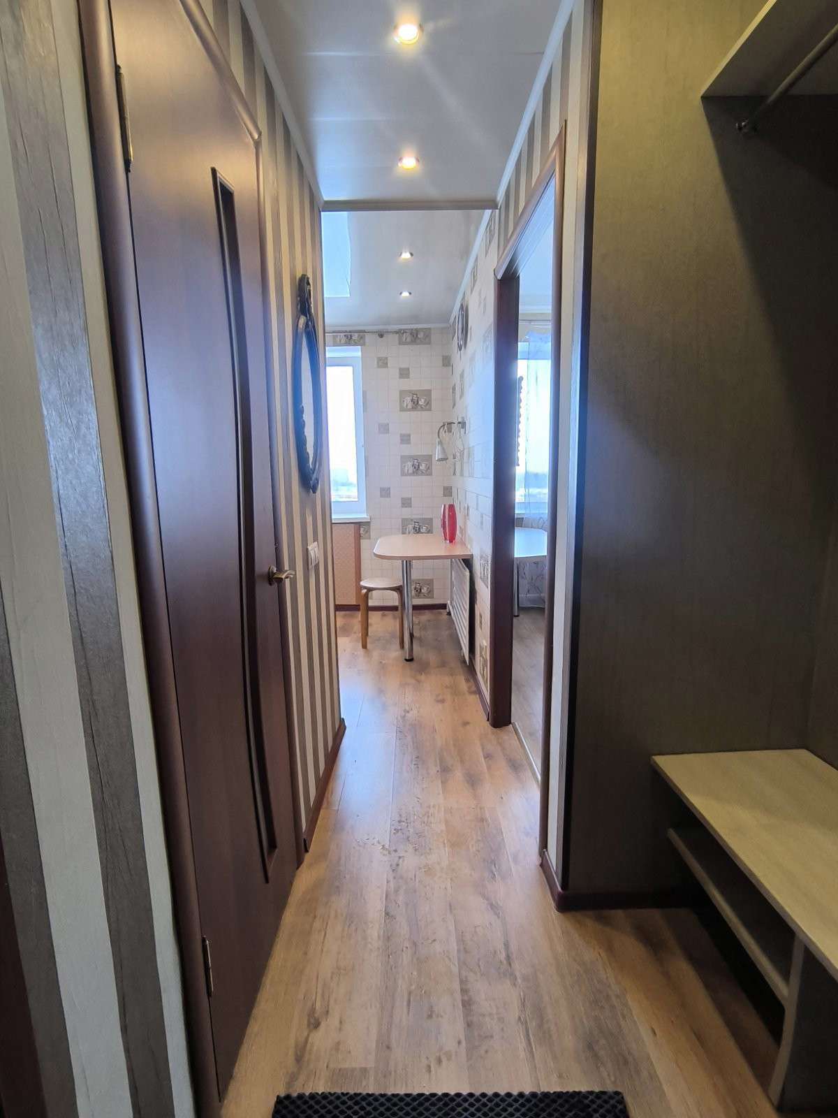 Малосемейка по ул. Минская 10. 9/9 кирпич, 1978 г.п. Есть полноценный техэтаж. Санузел совмещён, балкона нет. Окна ПВХ, входная дверь металлическая. В квартире выполнен косметический ремонт, состояние аккуратное-заехал и живи. На полу ламинат, в ванной- современная плитка. Новая тахта, шкаф-купе. Вся мебель и техника остаётся новому собвеннику. Хорошие соседи. В доме находится парикмахерская, магазин "Соседи", в шаговой доступности школа №7.