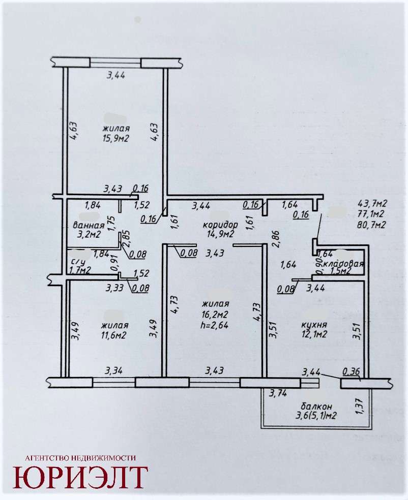 Жилая площадь 43,7 м2, кухня 12,1 м2. Окна все ПВХ, на полу ламинат, плитка керамическая, входная дверь металлическая. В кухне установлена система очистки воды. Индивидуальные приборы учёта воды, газа, электро- и теплоснабжения.