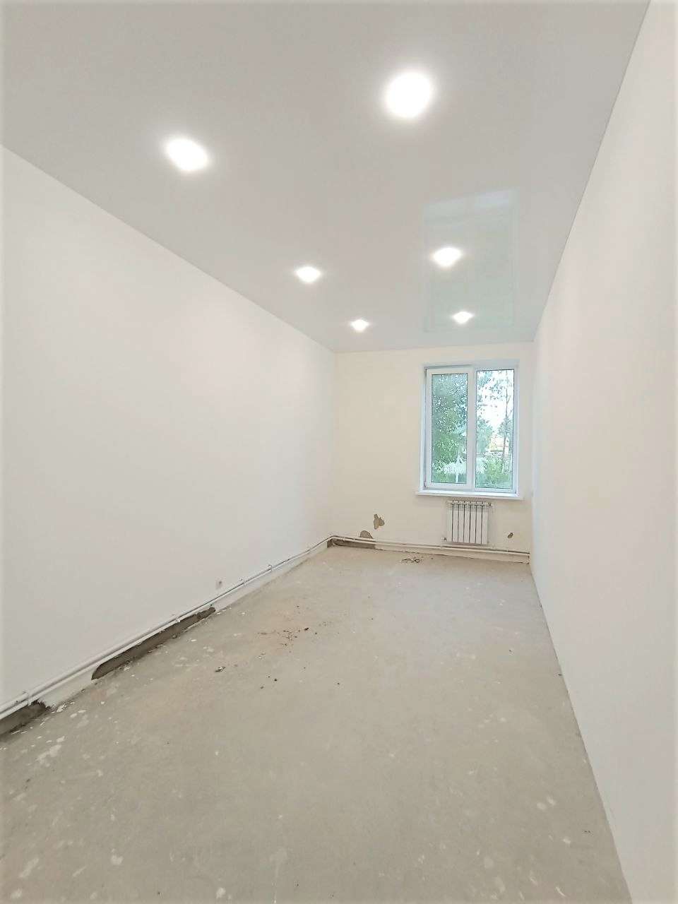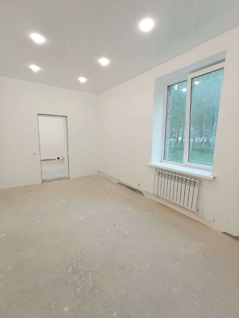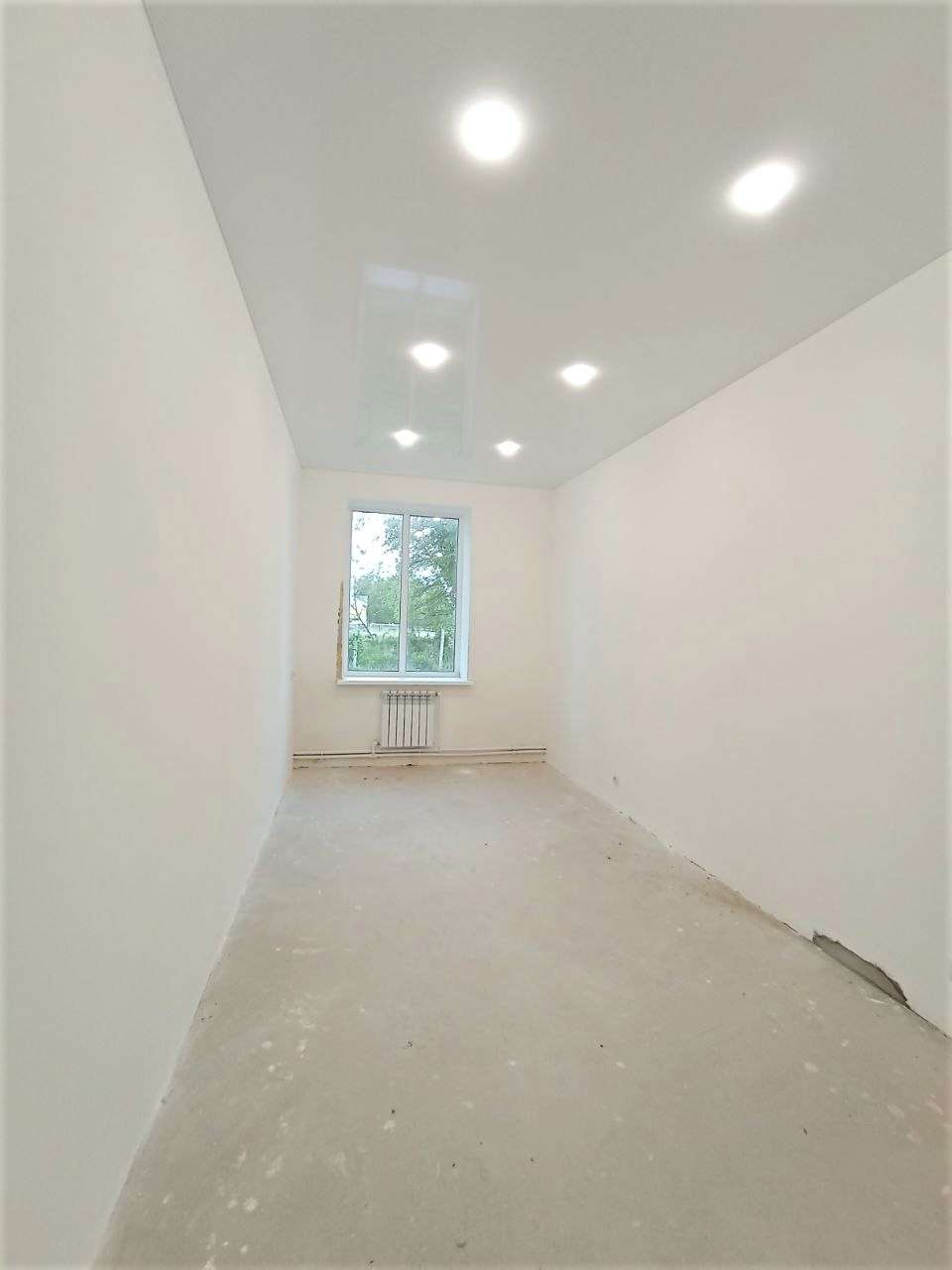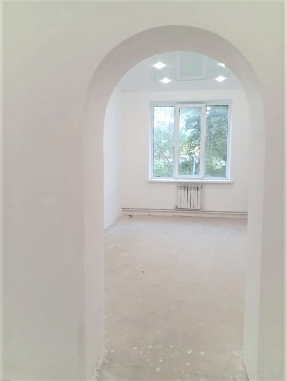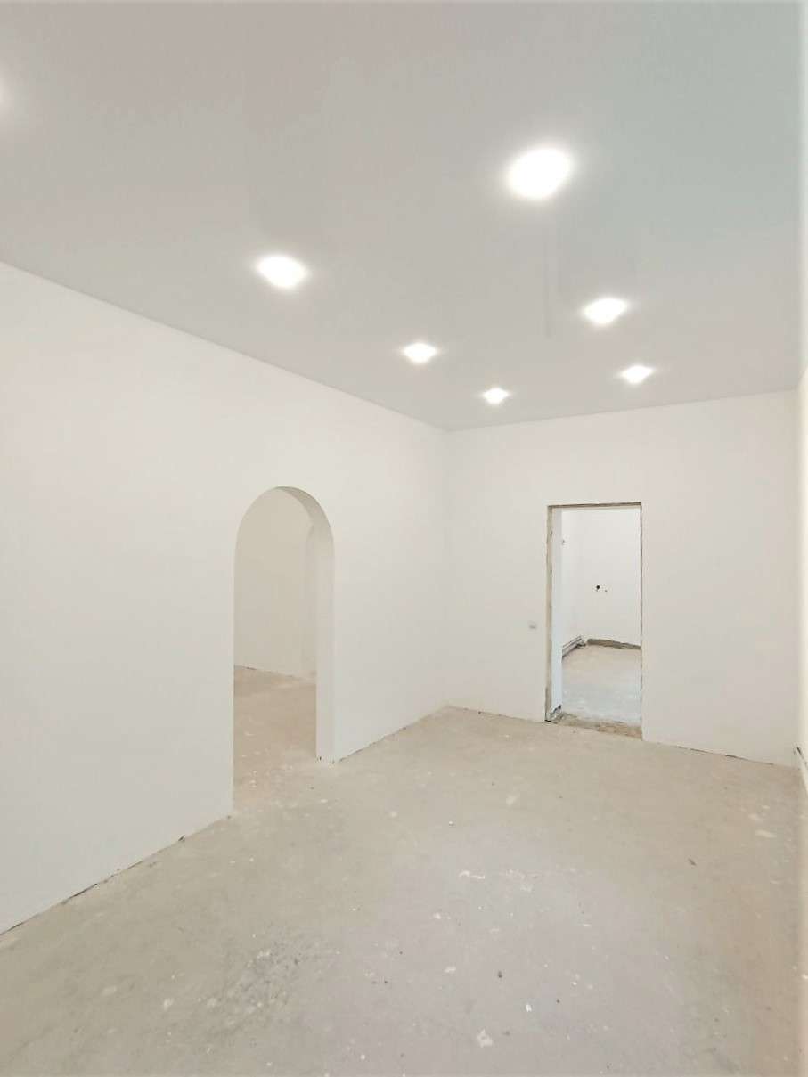 Материал стен - кирпич. Дом утеплен "термошубой". Новая проводка, натяжной белый глянцевый потолок, установлены точечные светильники, разведены и установлены розетки, выключатели. В квартире установлены окна ПВХ, стены полностью готовы к финишной отделке, пол выровнен. Вода, канализация заведены в дом. В просторной комнате 45,9 м.кв. можно сделать дополнительное зонирование или деление на комнаты. Квартира полностью готова к отделке по Вашему вкусу!