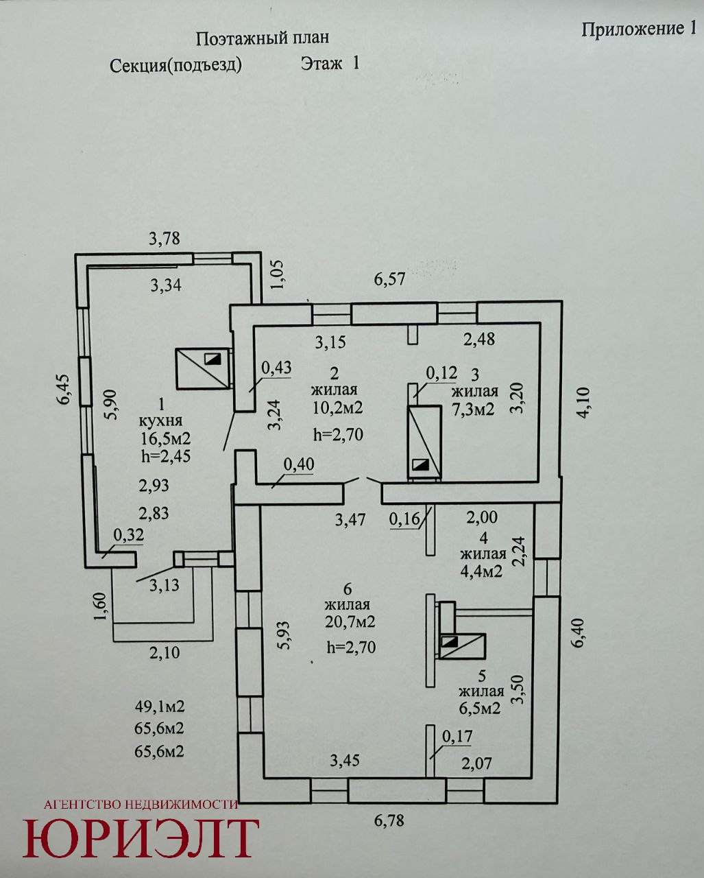 Общая площадь дома 65,6м2.