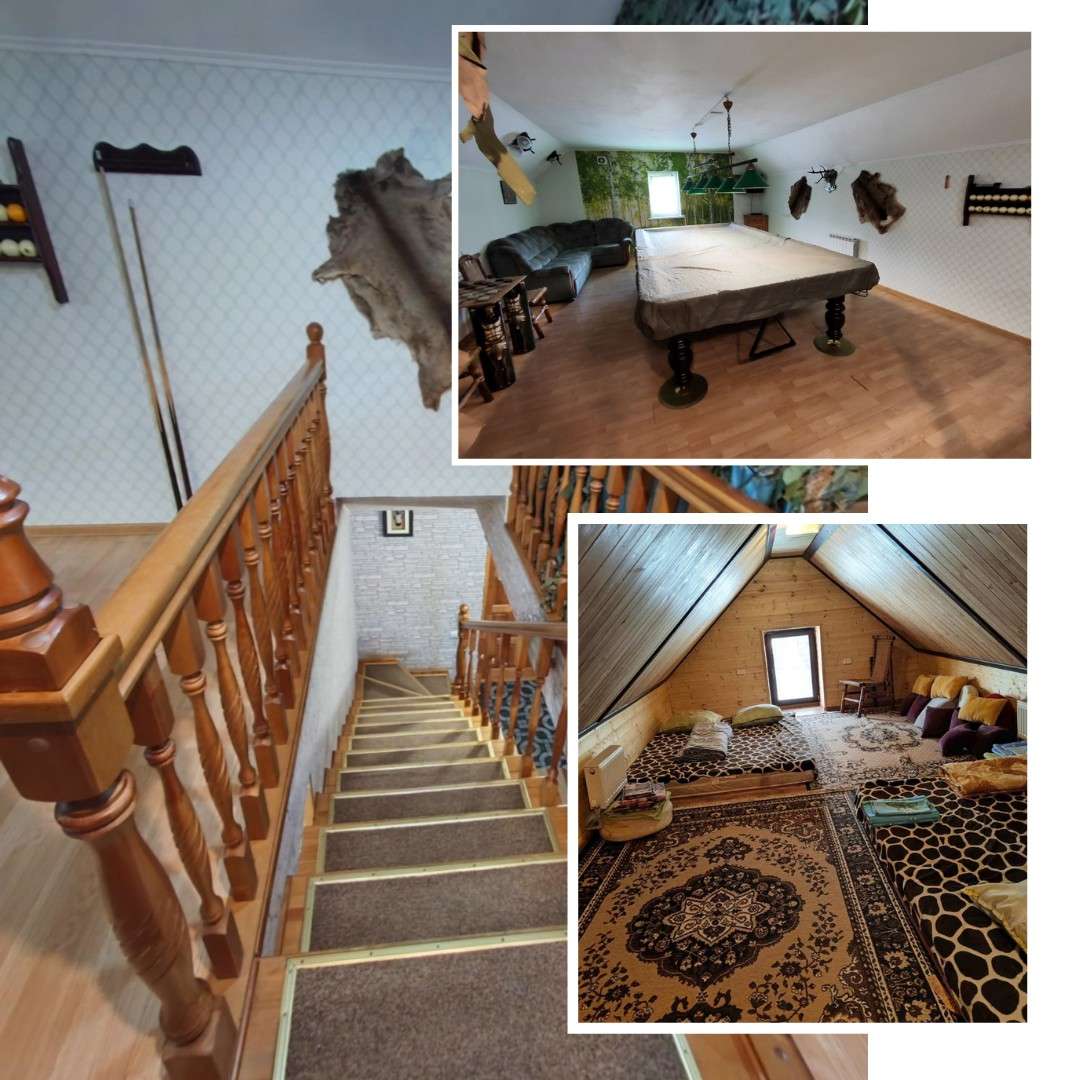 На территории есть баня, много зон развлечений – бильярд, площадки для волейбола, баскетбола и других спортивных развлечений. Расположение дома находится в живописном месте где проживание совмещает в себе комфорт, практичность и непередаваемые чувства домашнего уюта. Приобретая эту недвижимость, Вы покупаете не просто дом, а воплощение самых смелых идей для бизнеса и не только!!!!
